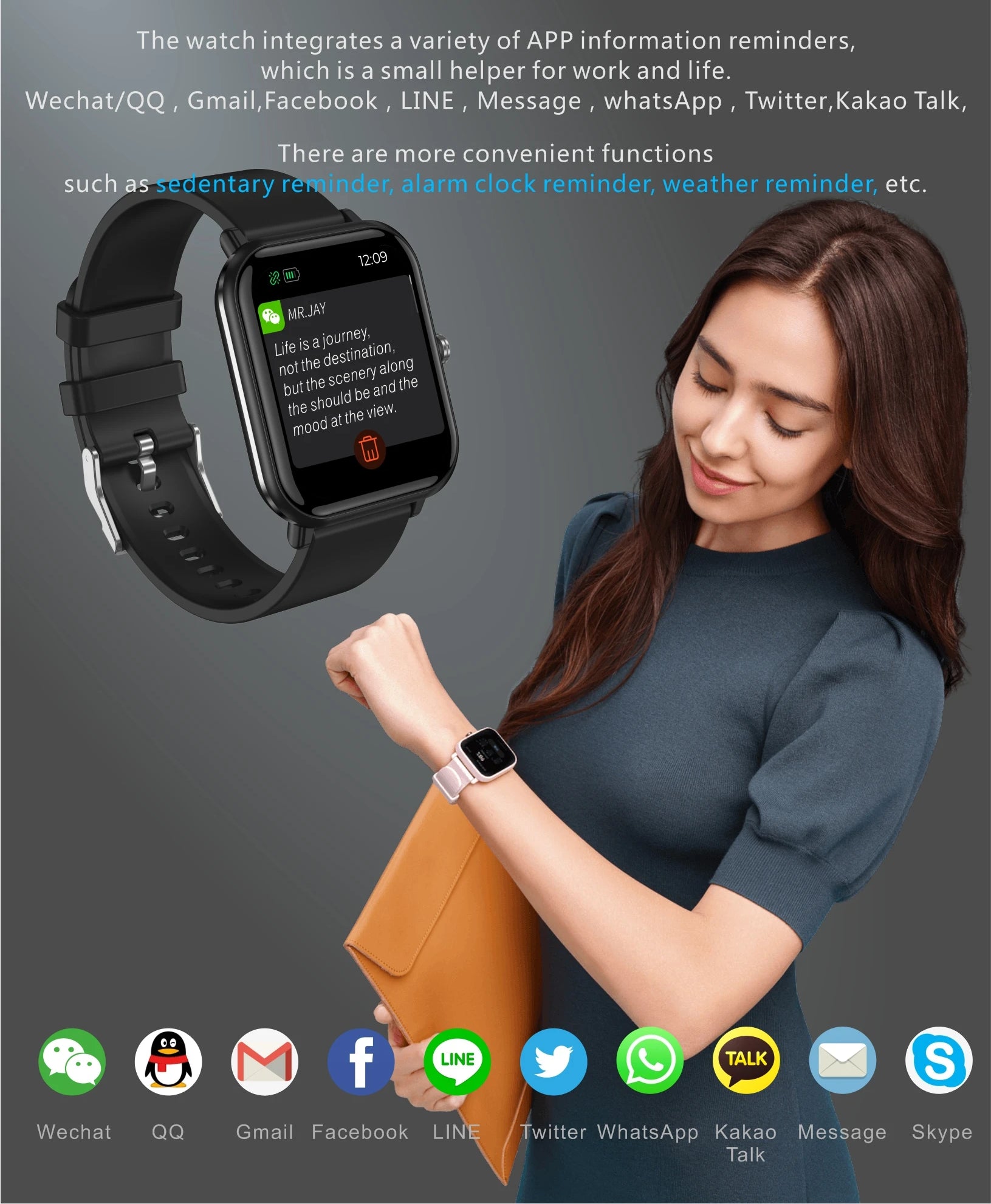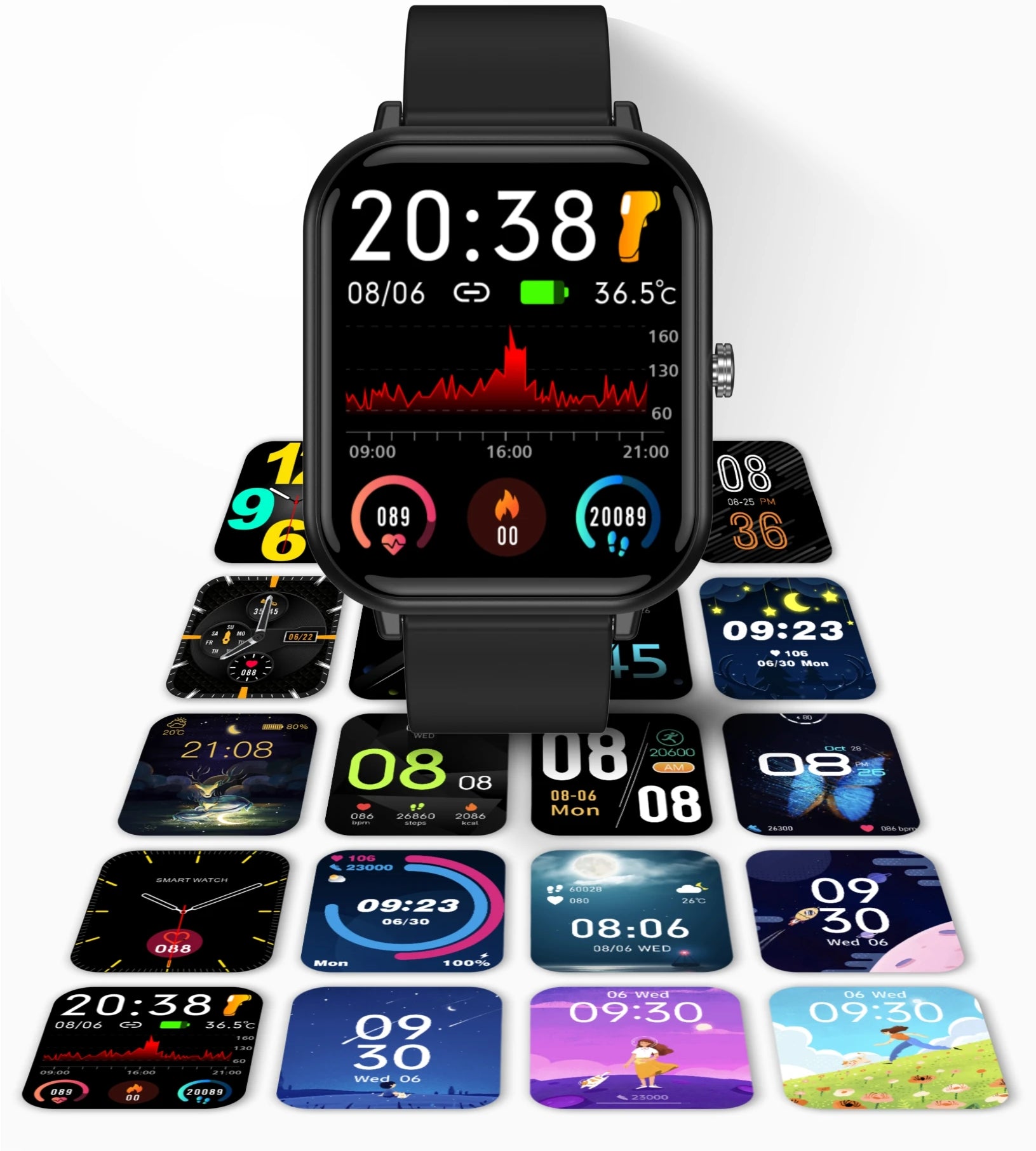 Your health is vital in letting us do the things you are passionate about. Whether it's going out for a hike or spending time with the family, we want to make sure you stay healthy to sustain that. With our Smart Watch, you can continue to be active and live your best life while making sure your health stays in check! As easy as a glance of the wrist, get access to your blood pressure, heart rate, body temperature, blood oxygen levels, and many more features. The fitness option allows for tracking of various sports. Its waterproof design means you can take it anywhere, ocean or pool, without worrying. Fully customizable watch interface for your own personal touch. It can even integrate with your android or iphone so you always see who's calling or texting at a glance. The best part is having all that functionality with a modern looking design!